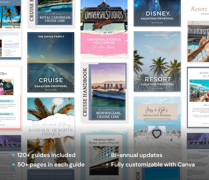 After purchase, you'll download the template, click the Canva link, and customize with your branding in minutes. Our templates use Canva's drag-and-drop editor - if you can use Facebook, you can use our templates. You'll be able to customize everything but most travel agents add things like their logo, business details, etc.
